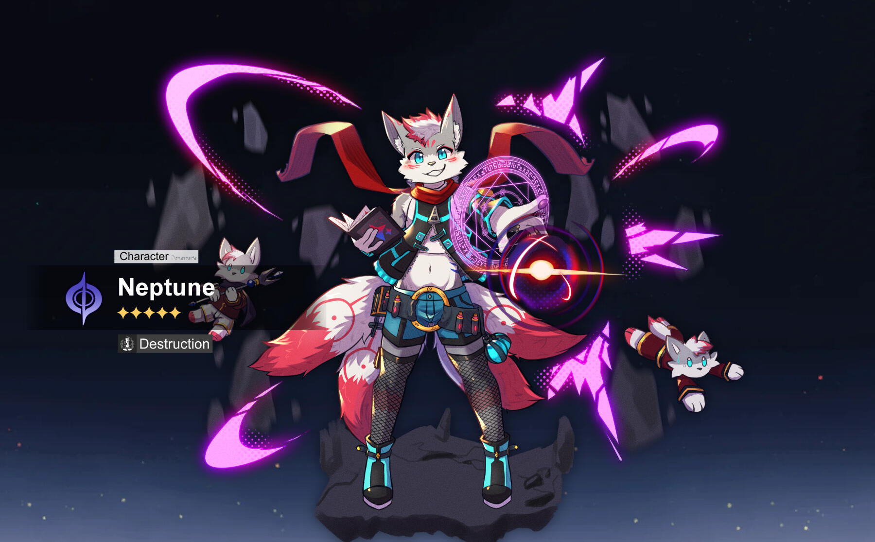 A simple character reference sheet of your character in a simple pose. By default they are flat colored and have their colors placed near them. The shape of the colors can be changed depending on the wants/needs. Additional art in the ref sheet can be requested.